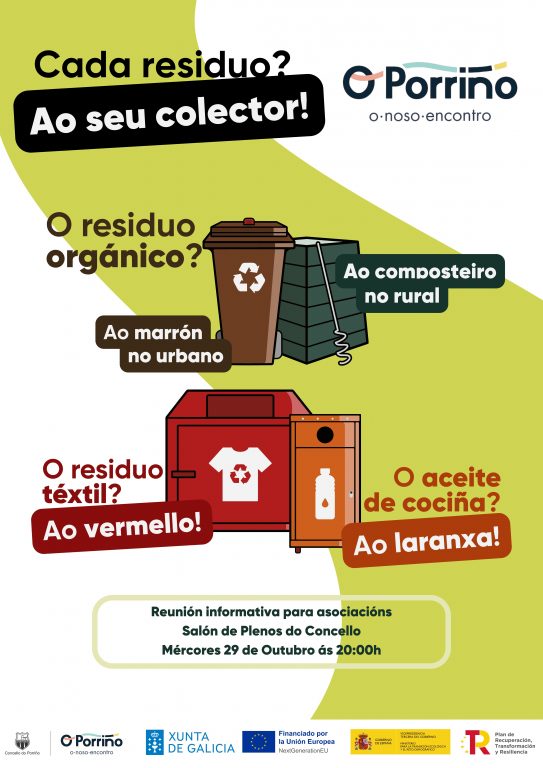 Na sesión, un técnico especializado explicará como se vai desenvolver a nova campaña municipal de residuos, que terá tres eixos principais: contedor marrón (biorresiduos), recollida de aceite doméstico usado e recollida de téxtil.