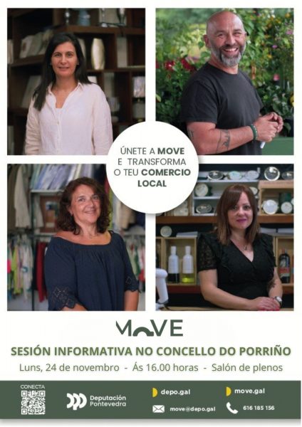 O Porriño, 11 de novembro de 2025.- O salón de plenos do Concello do Porriño acollerá o luns 24 de novembro, ás 16.00 horas, unha sesión informativa sobre MOVE, unha iniciativa impulsada pola Deputación de Pontevedra co obxectivo de crear unha rede de comercio local na provincia.