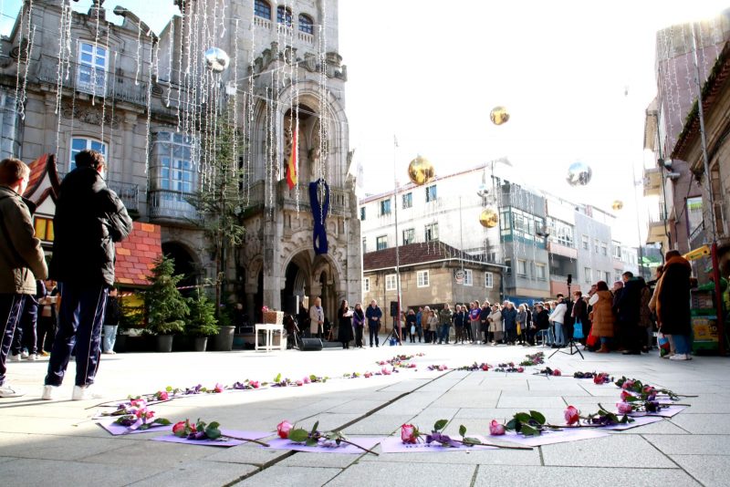 A programación comezou onte coa colocación do lazo morado na fachada do Concello. Hoxe ao mediodía instalouse o Punto Violeta na Praza do Concello, seguido do acto de inauguración da Praza 25N, fronte a igrexa parroquial de Santa María do Porriño, acompañada dunha peza de violín que deu inicio a un momento especialmente emotivo.