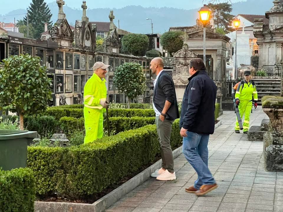 Xunto co concelleiro de Limpeza e Cemiterios, Carlos González, o rexedor supervisou estes días os traballos que están a desenvolver os operarios municipais. As actuacións inclúen limpeza xeral, retirada de maleza, varrido de accesos, mellora das zonas axardinadas e mantemento das instalacións, tanto no interior do cemiterio como nas zonas circundantes. Ademais, dende o Concello tamén colabora co acondicionamento e posta a punto dos cemiterios situados nas diferentes parroquias.