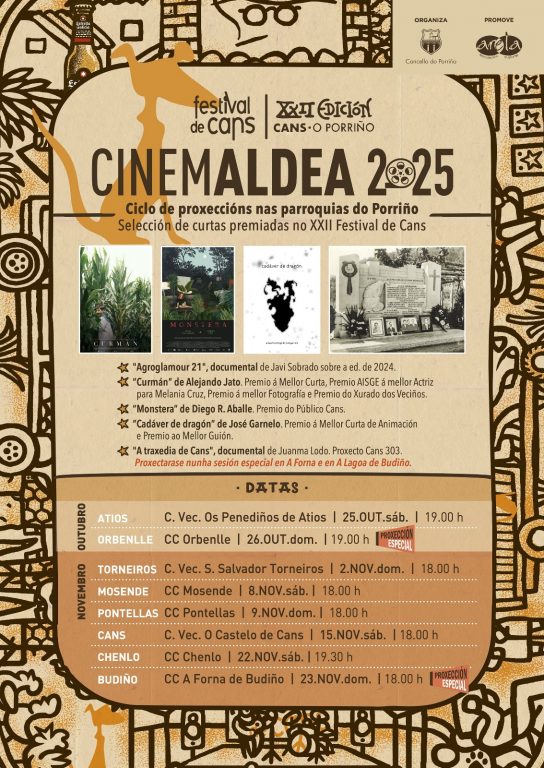 Desde a última fin de semana de outubro, e durante todas as fins de semanas de novembro, as curtas premiadas en Cans chegarán ás parroquias do municipio.