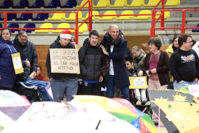 Aceesca foi a gran protagonista da xornada, acompañada de usuarios e alumnado doutros centros como Afaga, Cogami, IES Pino Manso e os colexios Ribeira, Antonio Palacios e Hermanos Quiroga. Tódolos participantes realizaron unha pequena andaina simbólica no interior do pavillón, á que se sumou tamén a veciñanza, a concelleira de Política Social Teresa Veloso e o alcalde Alejandro Lorenzo que sinalou que “hoxe é un día para poñer en valor o que nos fai únicos, para lembrar que a diversidade constrúe O Porriño que queremos: inclusivo, accesible e cheo de oportunidades. É unha alegría conmemorar o Día Internacional das Persoas con Discapacidade acompañados de todos vós. Gracias por estar aquí e por facer desta mañá un espazo de convivencia e respecto; gracias tamén ás familias, profesionais e veciñanza pola súa implicación e cariño. O voso traballo, a vosa forza e, sobre todo, a vosa diversidade enriquece e dá sentido ao Porriño que construímos cada día”, rematou dicindo.